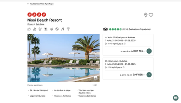 Depuis mars 2025, Hotelplan indique de manière transparente l’empreinte climatique des voyages proposés sur son site Internet. En outre, la clientèle se voit proposer un choix de quelque 1200 hébergements certifiés durables. La labellisation des hébergements durables a été développée en collaboration avec FAIRWEG. De plus, l’affiliation à KlimaLink garantit que les émissions de CO₂e des éléments constitutifs d’un voyage sont calculées selon une norme sectorielle uniforme et présentées de manière intelligible.